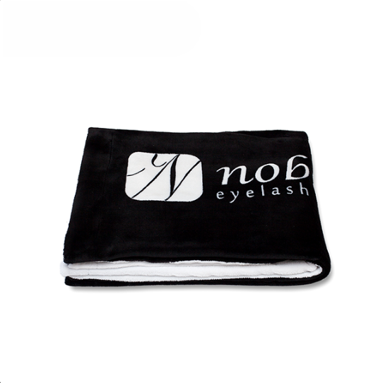 Miły w dotyku koc z logiem Noble Lashes. Niezwykle delikatny oraz miękki.