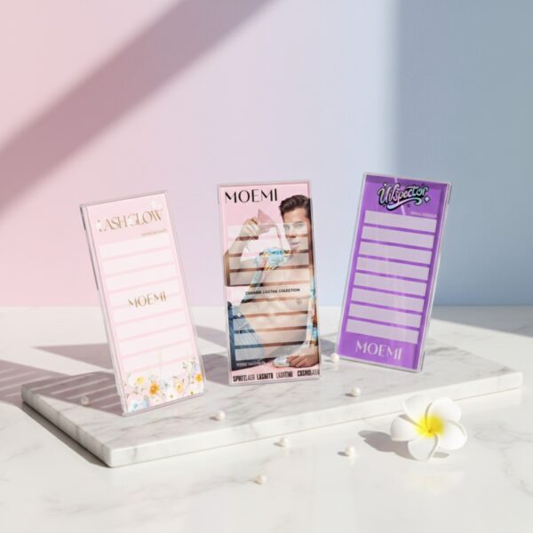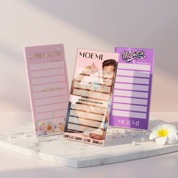 - Lekka, ale stabilna konstrukcja – W przeciwieństwie do ciężkich podstawek, holder Moemi jest poręczny i lekki. Mimo to, dzięki zastosowaniu antypoślizgowych, silikonowych nóżek, podstawka nie przesuwa się podczas odrywania rzęs z paska, gwarantując pełną kontrolę.